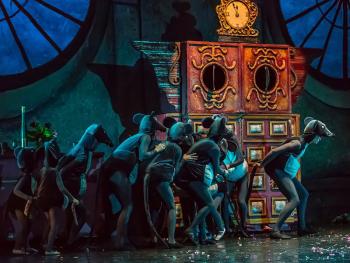 «Самое главное, что сохранилась атмосфера домашнего Рождества. Да, вы попадаете в театр, но и в атмосферу запаха мандаринов, в объятия своих любимых бабушки и дедушки. Дроссельмейера мы сделали по образцу нашего Деда Мороза. Первый акт пропитан праздником, карнавалом, мыши появляются в зале, бегут через весь зал, четырехлетние солдатики, которые изображают из себя настоящих воинов. Ну и, конечно, декорации Андрея Злобина и Анны Ипатьевой, они ни на что не похожи. У нас самое главное действующее лицо в спектакле – это волшебный шкаф. Когда мы были маленькие с моим братом, мы всегда забирались в шкаф и что-то там находили. Мой брат сейчас играет Дроссельмейера».